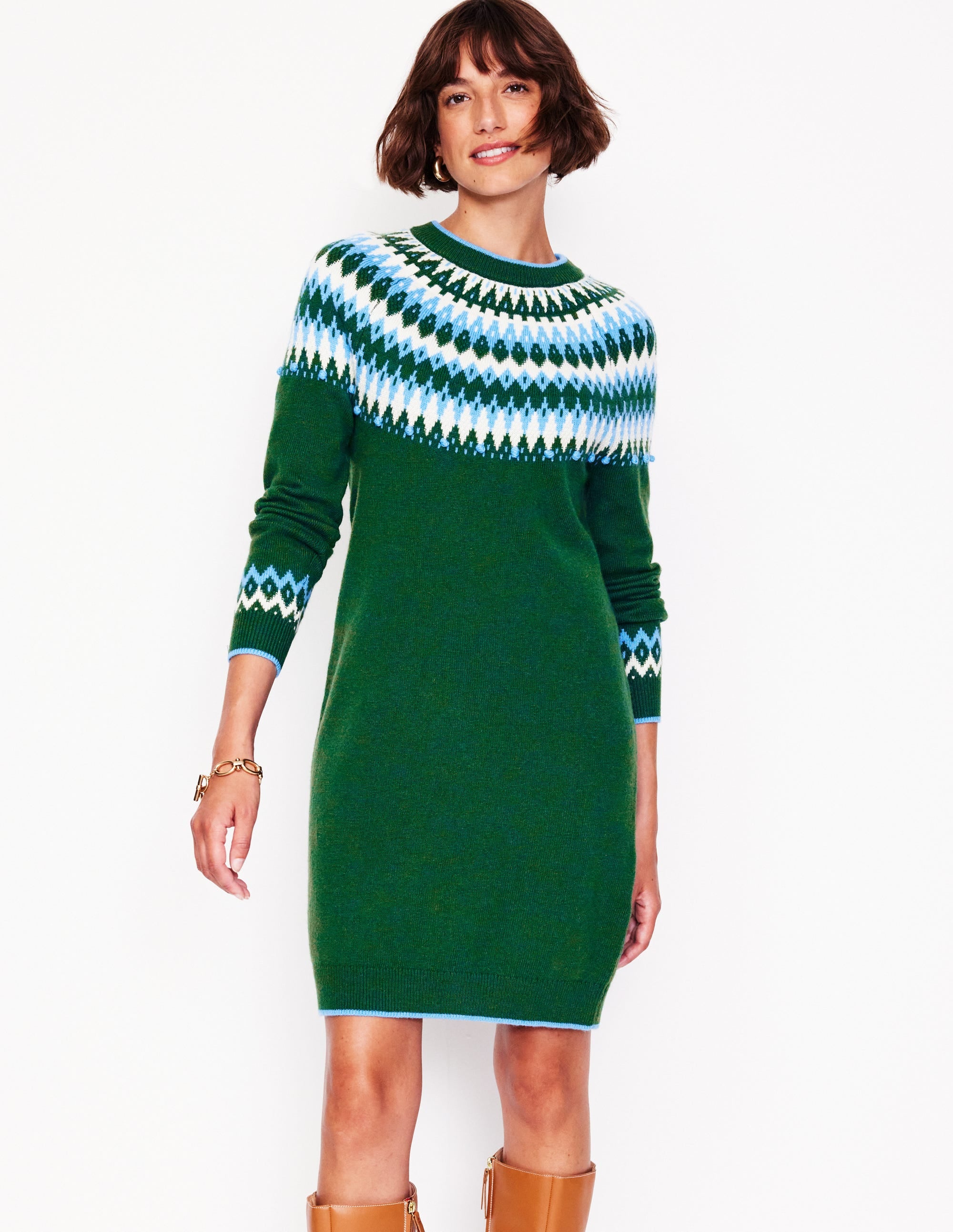 Eleanor Fair Isle Dress-Pine, Fair Isle