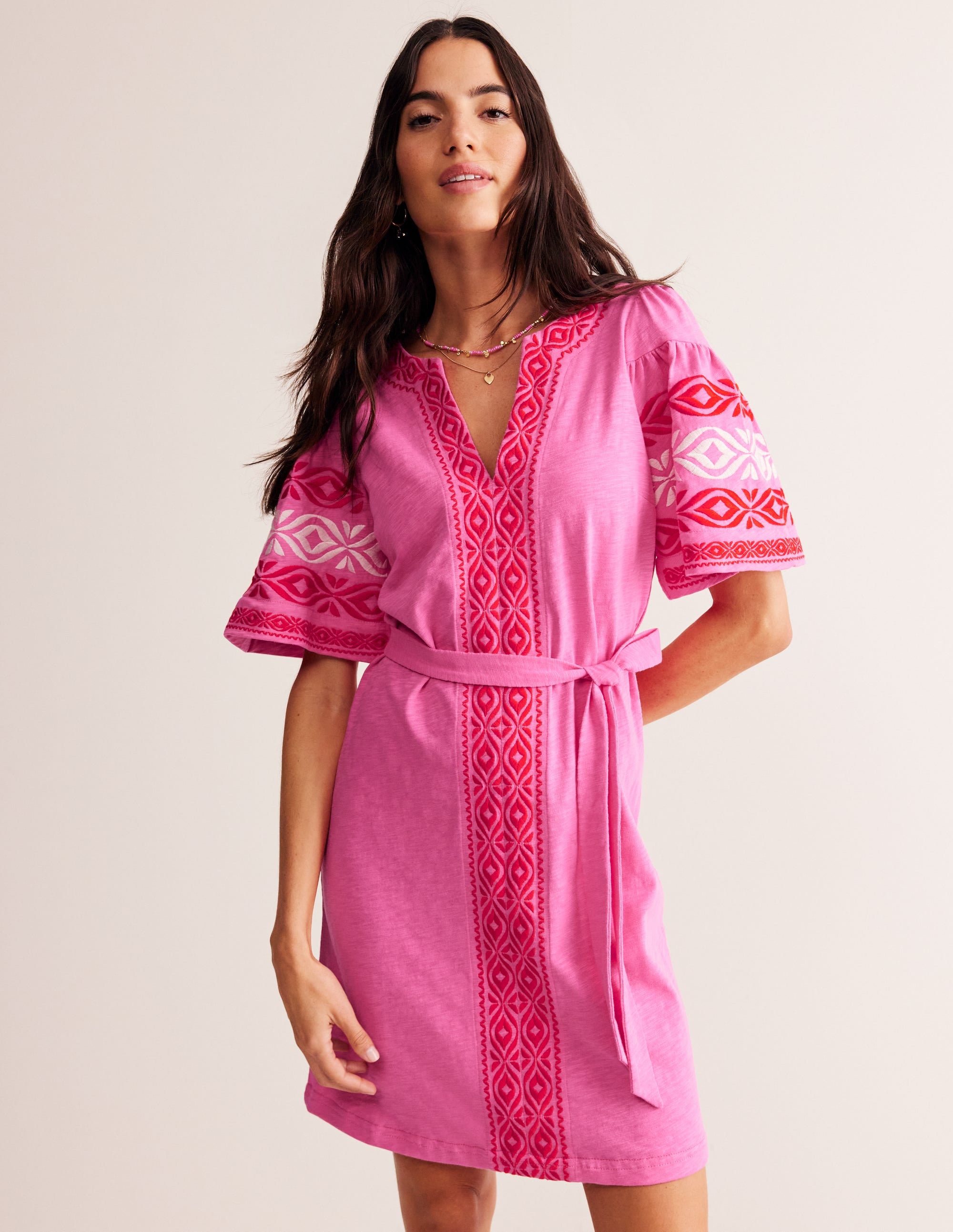 Holiday packing 101: take an effortless kaftan dress you can throw on around the pool and dress up for cocktails. Bonus points if it’s got colourful embroidery to rival the local scenery.