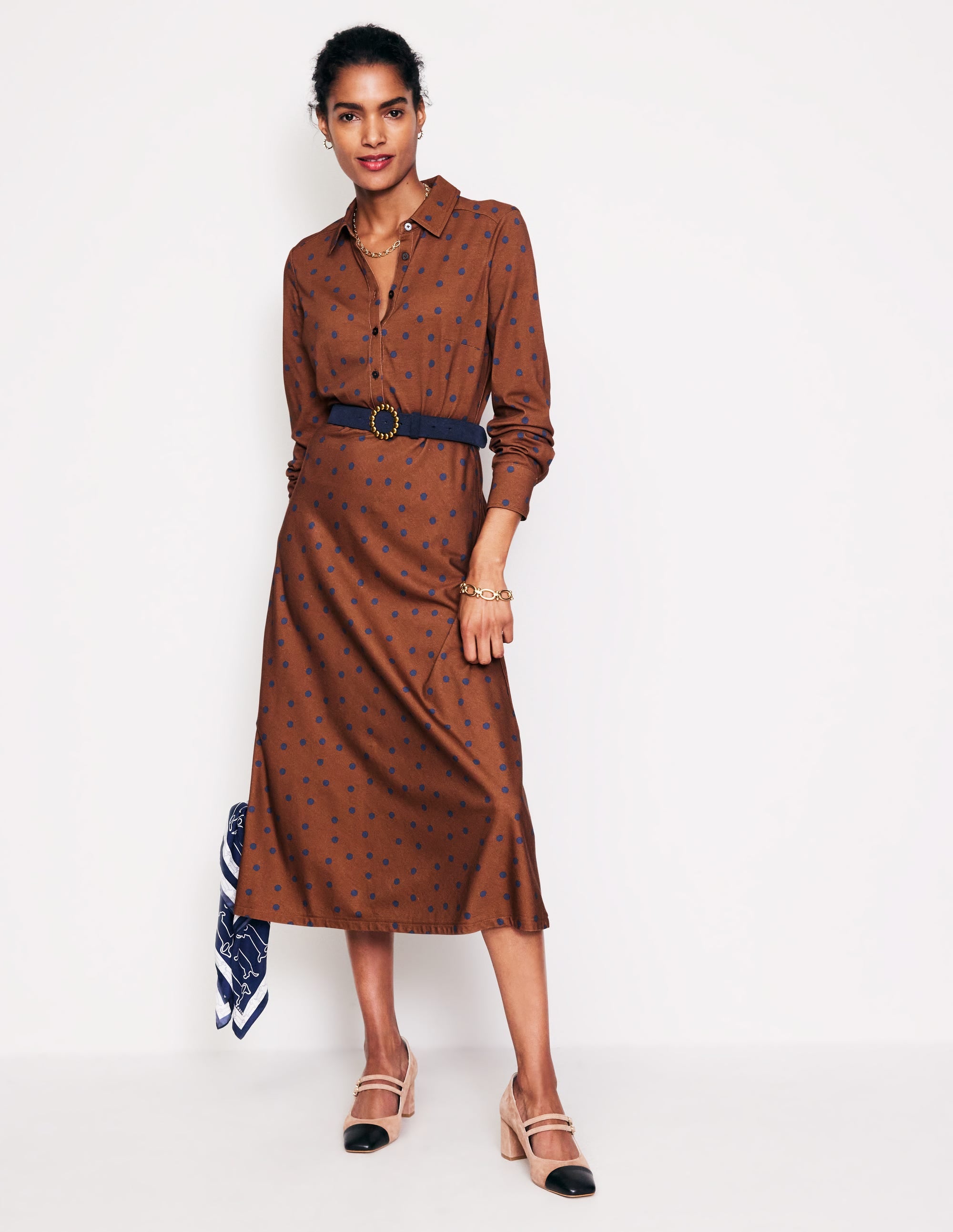 Laura Jersey Midi Shirt Dress-Autumn Brown, Sparse Spot